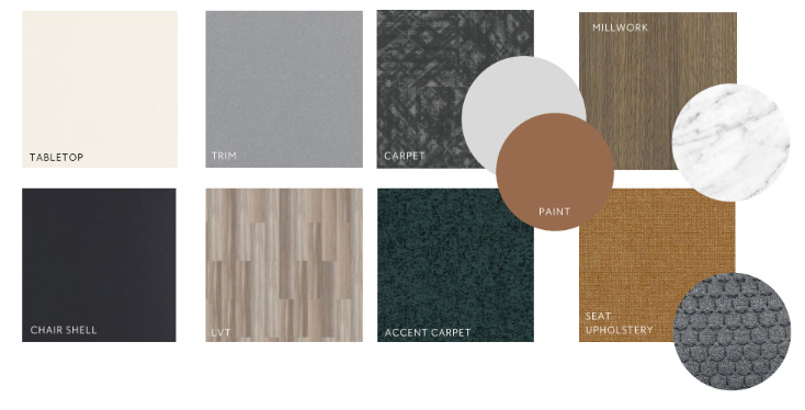 Our team can help you select both architectural and furniture finishes to bring your project palette to life. Our goal is to provide cohesive and aesthetic solutions for any budget that will meet high performance standards.