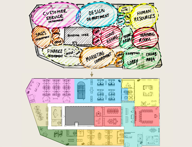 When creating your 2D plan, we will listen to your programming requirements and lay out the floor plan to meet desired department and functional adjacencies.
